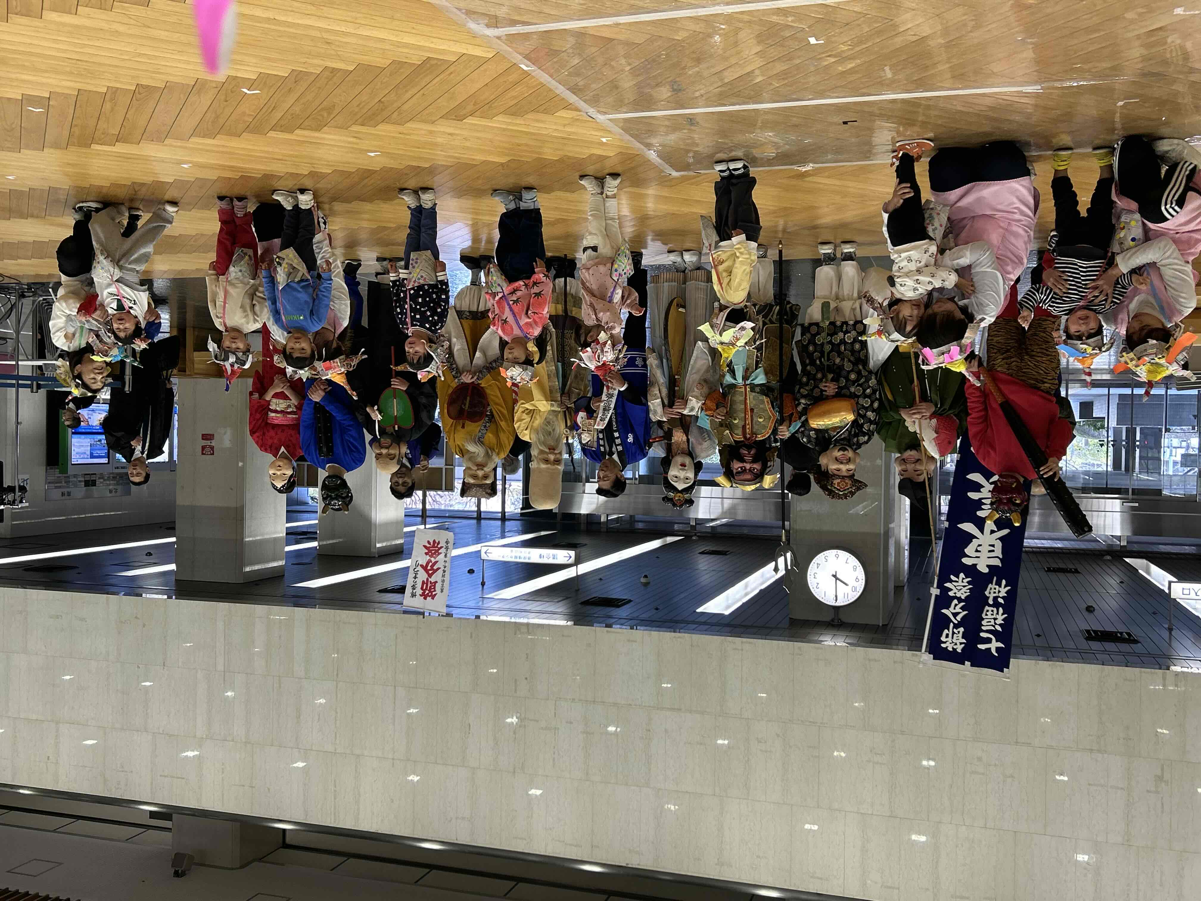 福冈县知事服部先生与居住在本县的外国留学生们一同参与,留学生们装扮成七福神和阿多福,为现场增添了热闹气氛!