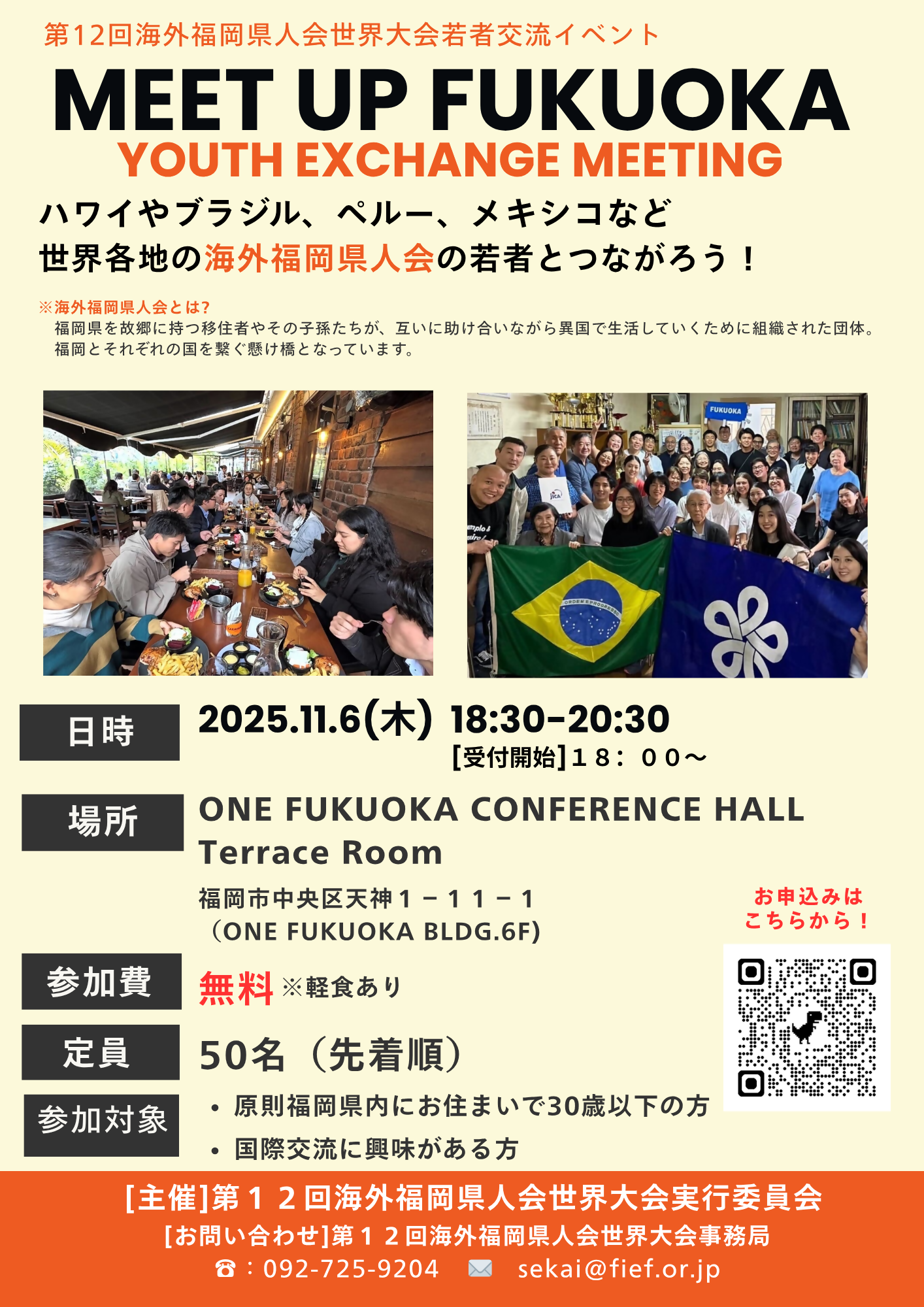 県内の大学生などの若い世代と海外福岡県人会に所属する日系3世や4世の青年たちが楽しく交流するMEET UP FUKUOKAを開催します。