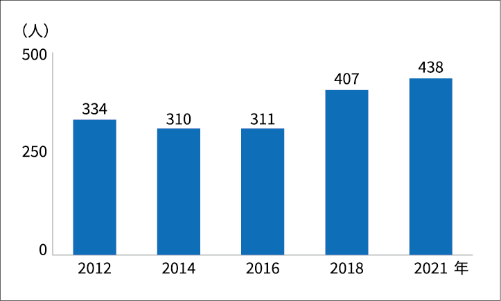 福冈县内需要接受日语辅导的儿童学生人数的推移情况